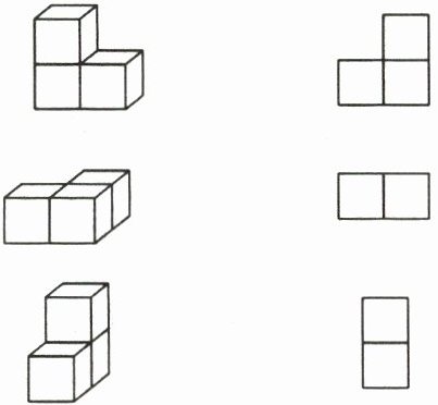 本题可根据从不同方向观察物体的方法,分别确定左边三个物体从上面观察所得到的图形,再进行连线。