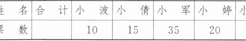 ②从表格中的票数可以看到,小军得票最多,为35票;小波得票最少,为10票。