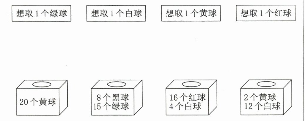 想取1个绿球 想取1个白球 想取1个黄球 想取1个红球