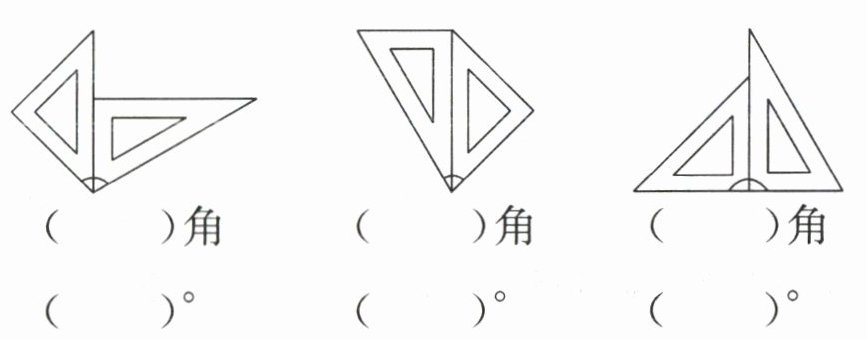 8. 下面的角都是用一副三角尺拼成的,先判断拼成的是什么角,再分别写出它们的度数。
