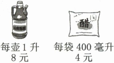 每袋$400$毫升$4$元,则每毫升袋装醋的价格为$4÷400 = 0.01$(元/毫升)。