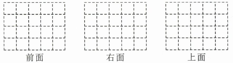 6. 右图是用 5 个同样大的正方体摆成的。从前面、右面和上面看到的各是什么图形?在方格纸上画一画。(6 分)