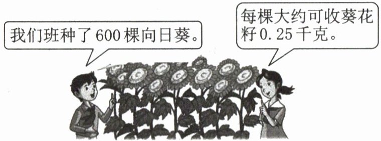 3. 我们班种了600棵向日葵。每棵大约可收葵花籽0.25千克。