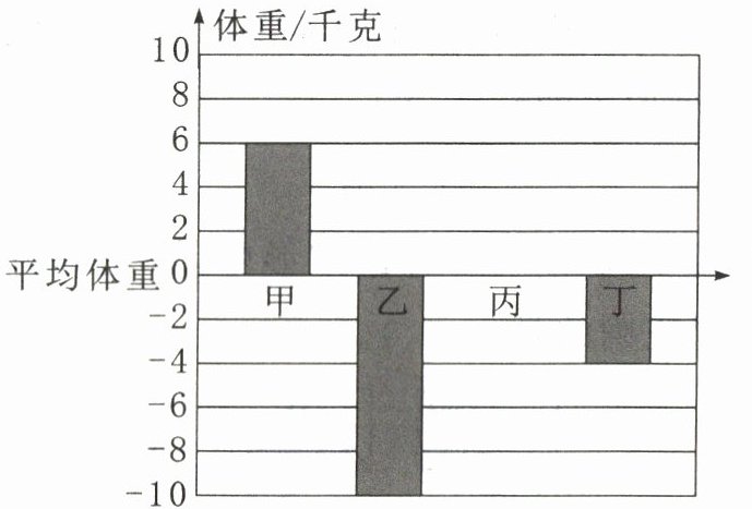 12. 甲同学的体重是36千克,如果以四人的平均体重为标准,那么甲同学的体重记为“+6”千克,可用如图所示的直条表示。