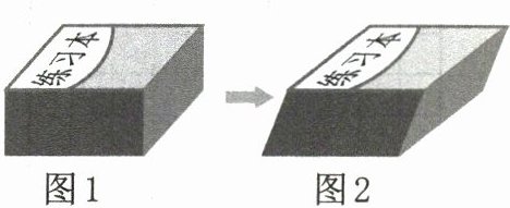 1. 如图,将一摞书摆成长方体,再均匀地斜放如图,其前面的面由长方形变成一个近似的平行四边形,长方形与该平行四边形相比(