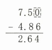 百分位不够减,向十分位借“1”,这里的“1”在十分位上,表示 1 个 0.1,借到百分位后,1 个 0.1 就是 10 个 0.01。