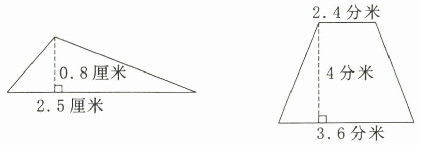 综上,三角形的面积是1平方厘米,梯形的面积是12平方分米。