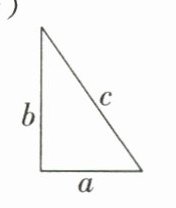 1. 一个直角三角形(如图),两条直角边的长分别为$a$、$b$,斜边长为$c$。