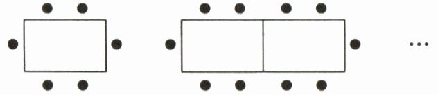 (2)1 张长桌坐 6 人,之后每多 1 张长桌多坐 4 人,所以摆放 n 张长桌时,最多可容纳人数为 6 + 4(n - 1)=4n + 2 人。