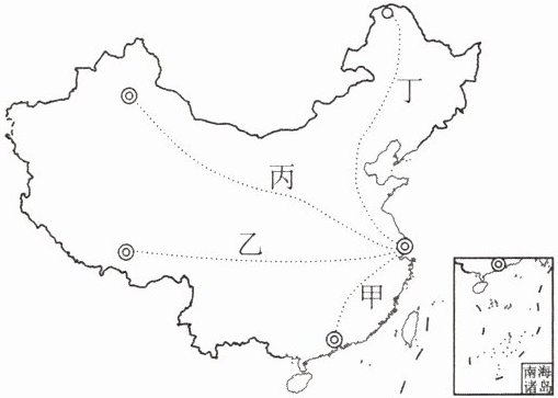 4. 某年暑假,在杭州上大学的甲、乙、丙、丁四位同学,分别回到了自己的家乡广州、拉萨、乌鲁木齐和漠河。四位同学中回家的路线经过我国地势第一级阶梯的是(