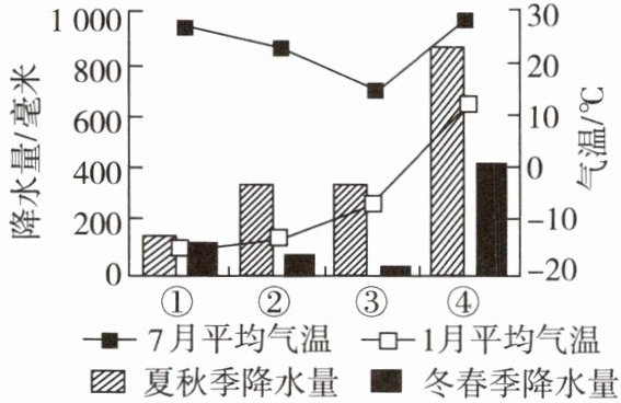 )3. 冬季,我国东部地区气温比世界同纬度地区平均值偏低的主要原因是受冬季风影响。(