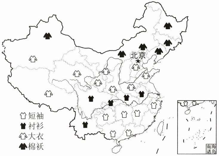 穿衣指数是指根据天气的阴晴、冷热、风力等情况,来提醒人们适当着装。读我国某日穿衣指数分布图,回答第18、19题。