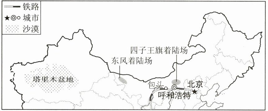 内蒙古高原平坦开阔,容易搜寻;温带大陆性气候,降水少,多晴天,大气能见度高;河湖稀少,着陆安全;地域辽阔,人口分布稀疏等。(3点即可)