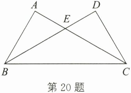 20. (本题满分8分)如图,在△ABC与△DCB中,AC与BD交于点E,且∠A= ∠D= 90°,AB= DC.
