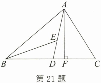 21. (本题满分8分)如图,AD,AF分别是△ABC的中线和高,BE是△ABD的角平分线.