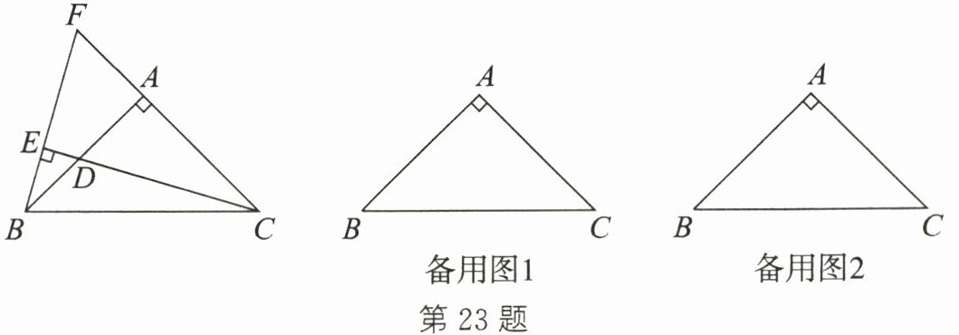 23. (本题满分10分)如图,在△ABC中,AB= AC,∠BAC= 90°,D是直线AB上的一动点(不与点A,B重合),BE⊥CD交CD所在的直线于点E,交直线AC于点F.