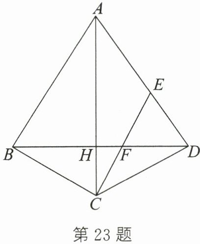 23. (本题满分8分)如图,在△ABD与△BCD中,AB= AD,CB= CD,∠DAB= 60°,过点C作CE//BA,交AD于点E,交BD于点F,连接AC,交BD于点H.