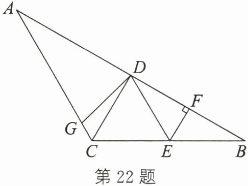 22. (本题满分8分)如图,在△ABC中,AC= BC,∠ACB= 120°,CD是边AB上的中线,线段BD的垂直平分线EF交BC于点E,交AB于点F,∠CDG= 15°.