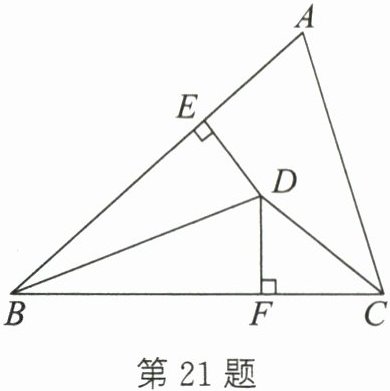 21. (本题满分8分)如图,在△ABC中,BD平分∠ABC,CD平分∠ACB,DE⊥AB于点E,DF⊥BC于点F.