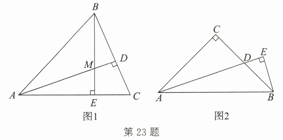 (1)如图1,在△ABC中,AB= AC,∠BAC= 45°,△ABC的高AD,BE相交于点M.求证:AM= 2CD.