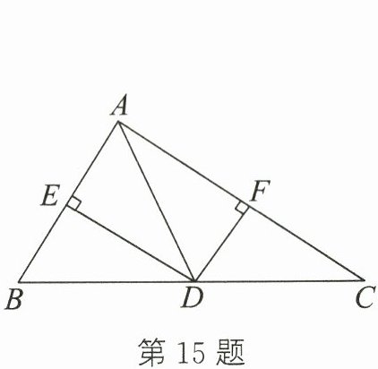 15. 如图,在△ABC中,AD为中线,DE和DF分别为△ADB和△ADC的高.若AB= 3,AC= 4,DF= 1.5,则DE= ______.