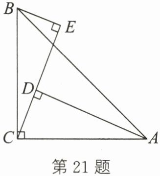 21. (本题满分8分)如图,在△ABC中,∠ACB= 90°,AC= BC,BE⊥CE于点E,AD⊥CE于点D.