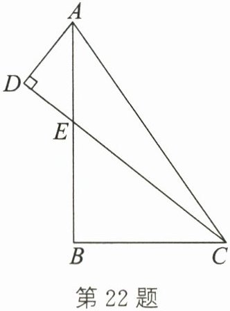22.(本题满分8分)如图,在△ABC中,E为边AB上的一点,连接CE并延长,过点A作AD⊥CE,垂足为D,AD= 7,AB= 20,BC= 15,DC= 24.