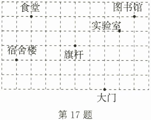 17. (本题满分6分)如图是某寄宿制学校的平面示意图,已知旗杆的位置是$(-2,3)$,实验室的位置是$(1,4)$.