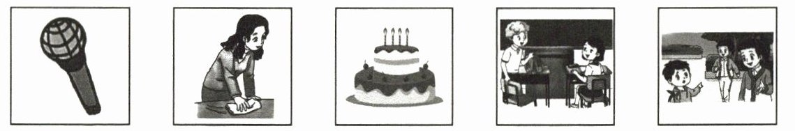 三、听录音,判断图意与所听内容是否相符,相符的打“√”,不相符的打“×”。(5分)