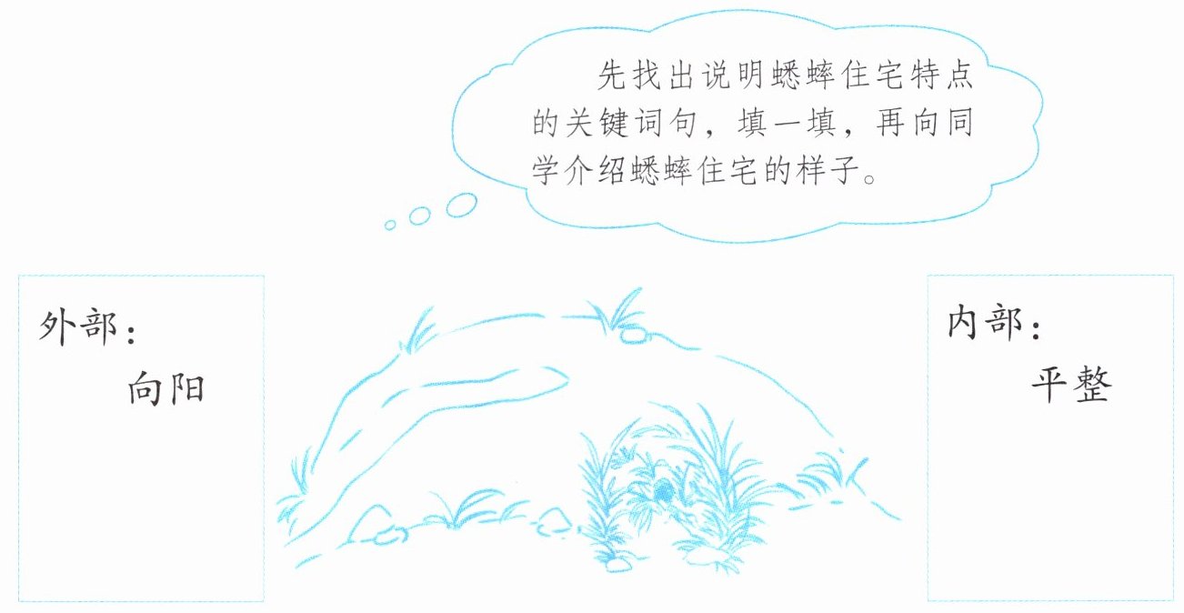 我能从课文的重点语句中找到答案,还能联系蟋蟀修建住宅的过程,用自己的话说一说。