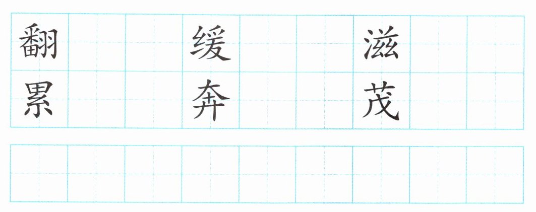 (此处应在每个方格中规范书写相应汉字,因文本限制,呈现如下:翻 翻 翻 缓 缓 缓 滋 滋 滋 累 累 累 奔 奔 奔 茂 茂 茂)