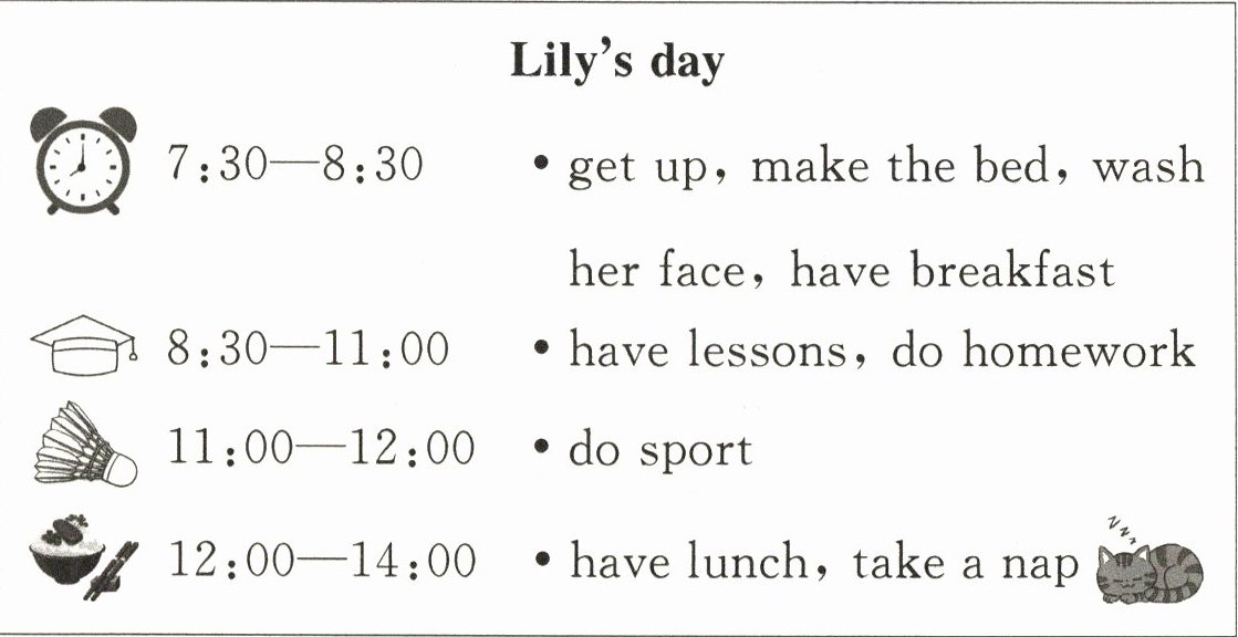 )5. From this timetable we can guess(猜测)______.A. Lily may have breakfast at seven B. Lily doesn't do any sport C. Lily likes reading very much
