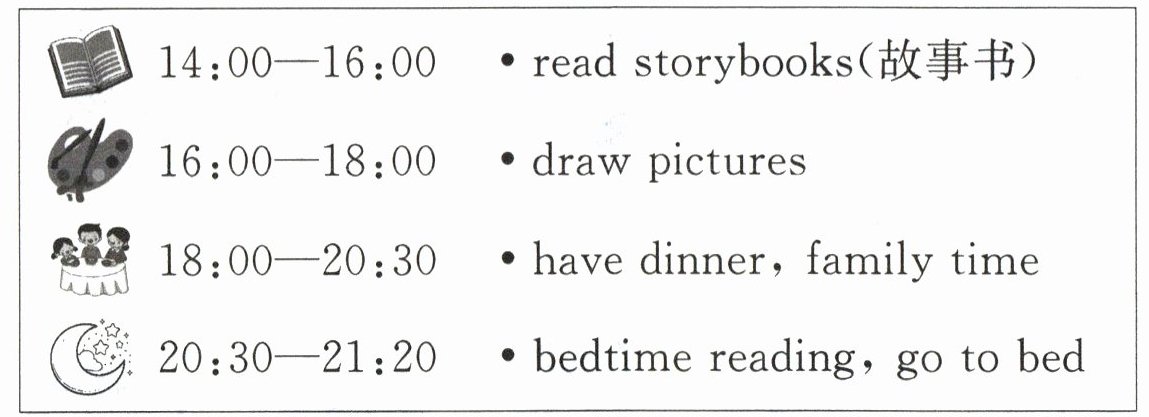 )2. Lily usually ______ at eight in the evening.A. does sport B. makes the bed C. plays games and watches TV with her family
