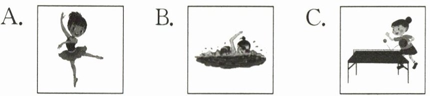 ( ) 1. A. He can swim. B. He can't swim. C. She can swim.