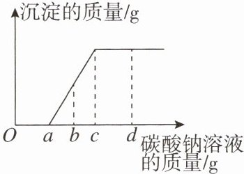 (4)滴加碳酸钠溶液质量至$d\ {g}$时,溶液呈