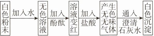 10. 某同学在家中找到一种白色粉末,将其带到学校实验室进行实验,实验过程及现象如图所示,对此粉末的成分判断正确的是 (
