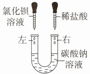 9. 如图所示,往装有碳酸钠溶液的U形管两侧分别滴加氯化钡溶液和稀盐酸。反应一段时间后,再充分振荡U形管,发现管内仍有白色固体残留。下列判断不正确的是 (