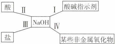 (2)小红总结了NaOH的4条化学性质(即NaOH能够与4类物质发生化学反应),如图所示。
