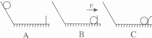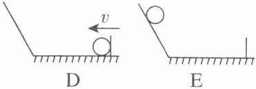 5. 如图所示,一个小钢球从斜面上滚下,滚到水平面上后又被一弹簧片弹了回去。指出下面几个过程中能量的转化情况。(不计一切摩擦力)