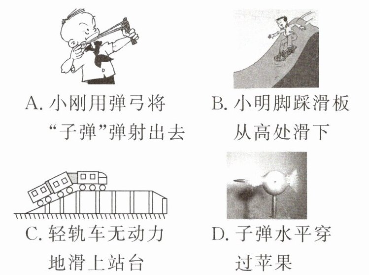 1. 下列四幅图中的能量转化属于动能转化为重力势能的是(