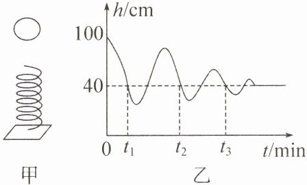 9. 蹦床是广大青少年喜欢的体育项目。我们可以用小球和弹簧模拟蹦床运动的过程,如图甲所示。将小球从弹簧正上方的某处由静止释放,小球所处高度 h 随时间 t 变化的情况如图乙所示。小球最终静止在弹簧上,此时弹簧长度为 40 cm。