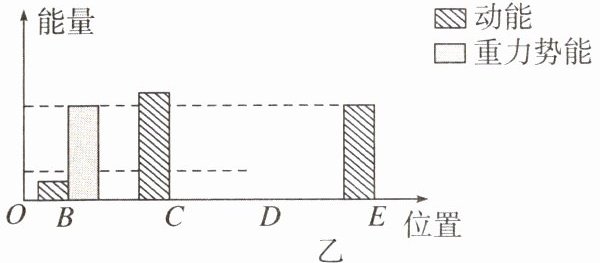 8. 如图甲所示,过山车从 A 点出发,先后经过 B、C、D、E 点。图乙是过山车在 B、C、D、E 点的动能和重力势能大小的示意图,则过山车在