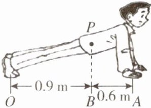 7. 做俯卧撑运动的人可视为杠杆。如图所示,一同学重500N,P点为其重心,他每次将身体撑起,肩部上升0.5m。某次测试中,他1min内完成30次俯卧撑,将身体匀速撑起,双脚对地面的压力为