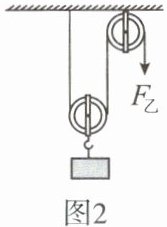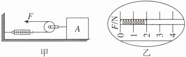 2. 如图甲所示,物体A在水平拉力F的作用下,以0.2m/s的速度在水平面上做匀速直线运动,此时弹簧测力计示数如图乙所示。若不计滑轮、弹簧测力计和绳的重力及绳与滑轮之间的摩擦,则下列说法不正确的是(