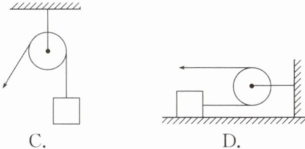 6. 小明用如图所示的装置测量大气压时,因弹簧测力计的量程太小,无法拉开吸盘,于是他加了一个轻质滑轮,其中最有可能完成实验的是(