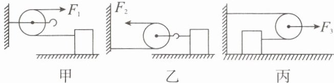 5. 如图所示,滑轮的重力和其与细绳之间的摩擦均不计,物体的重力都是100N,物体与水平面间的摩擦力都是30N,当物体做匀速直线运动时,分别作用于各绳端的拉力$F_{1}=$