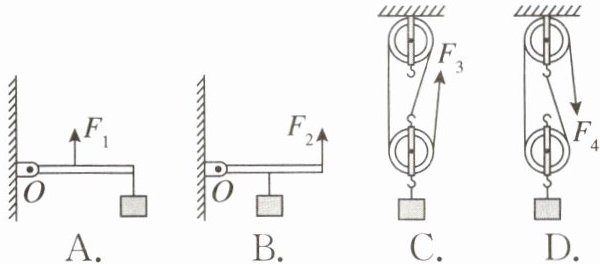 3. 用下列简单机械,使重力同为G的物体都处于静止状态,不计摩擦、机械自重及绳的重力,其中用力最大的是(