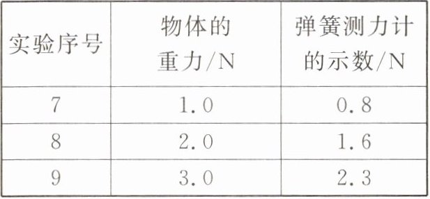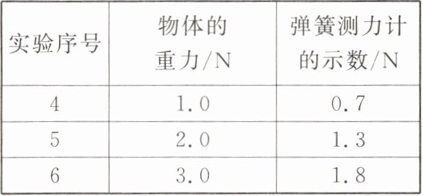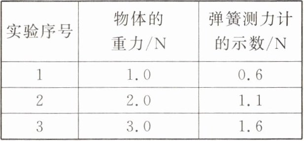 |实验序号|物体的重力/N|弹簧测力计的示数/N|