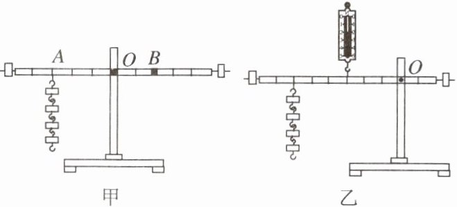 。实验结束后,小明提出了新的探究问题:若支点不在杠杆的中点,杠杆的平衡条件是否仍然成立?于是小组同学利用图乙所示装置进行探究,发现在杠杆左端的不同位置,用弹簧测力计竖直向上拉使杠杆处于平衡状态时,测出的拉力大小都与杠杆平衡条件不相符,其原因是