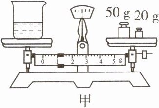 ②横梁调节平衡后,如图甲所示,测得烧杯和水的总质量$m=$
